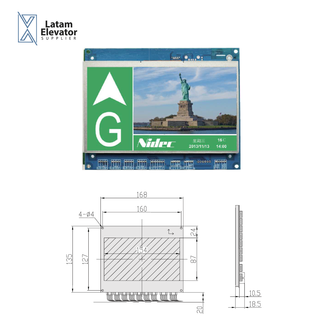 Paneles de alta resolución gráfica tipo LCD/TFT, para visualización de piso, dirección, mensajes informativos o de emergencia.